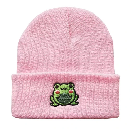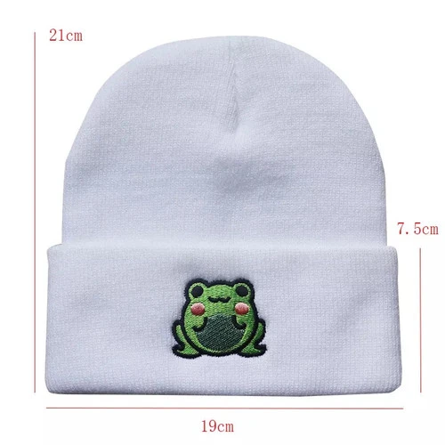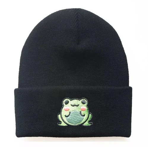 Bonnet avec une grenouille verte brodée