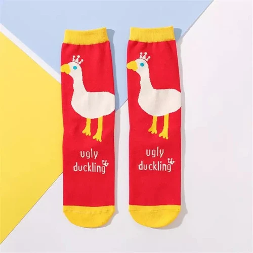 Paire de Chaussettes Rouge avec un Canard avec une Couronne