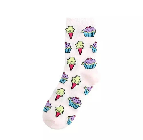Une Bonne Paire de Chaussettes avec de merveilleux petits cupcakes et de bonnes glaces 🍦 Taille unique 35-40 Composition: env. 85% Cotton, 5% Spandex et 10% Polyester