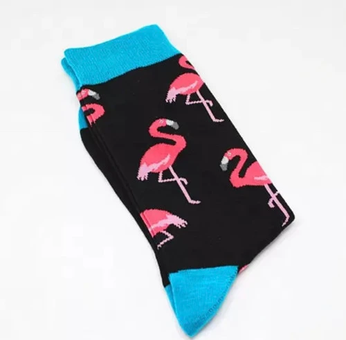 Paire de Chaussettes noires et bleues avec des flamants roses.