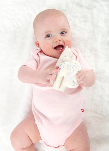 Jouets de bain en caoutchouc naturel et anneaux de dentition.