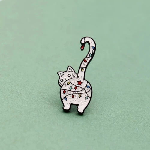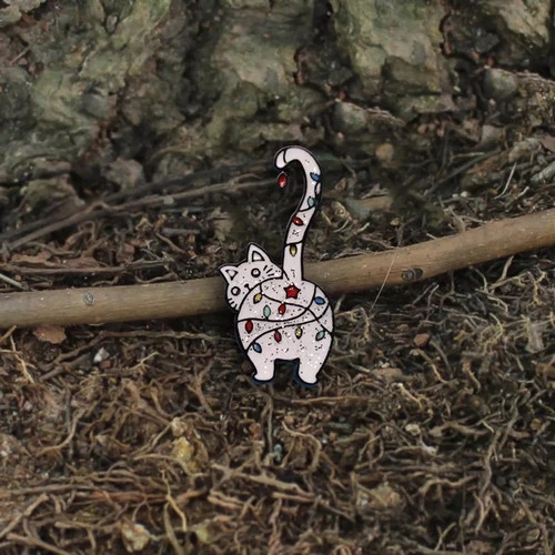 Pins en Metal chat avec guirlande lumineuse de noel