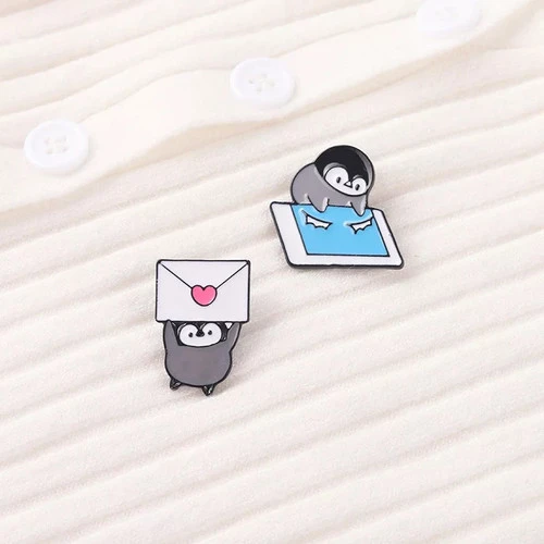 Pins en métal pingouin amoureux avec une enveloppe à la main 🐧