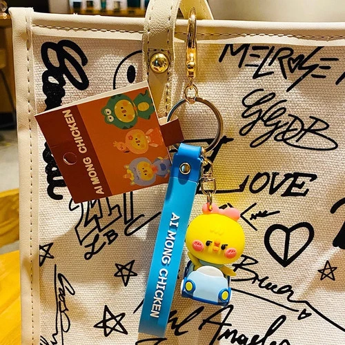 Porte-Clefs poussin jaune dans une voiture cabriolet.