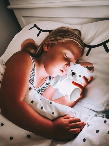 La veilleuse Fabian rechargeable. Il aide tout enfant à s’endormir tranquillement. Vous choisissez de laisser allumer toute la nuit, ou de programmer la veilleuse pour 15 minutes.